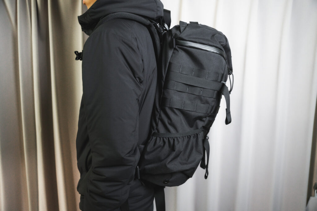 26Lという容量の割に見た目はコンパクトで普段使いしやすく、それでいて衣類やガジェット類まで「ほとんどこれ一つで足りる」と言われる収納力を備えます。
