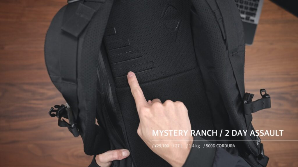ミステリーランチ独自のフューチュラヨークシステムで背面長を無段階調整でき、自分の背格好にぴったりとフィット。
