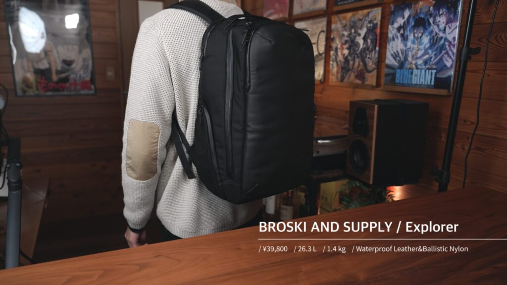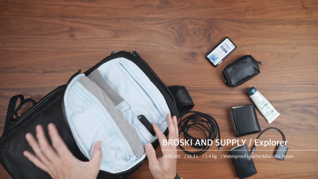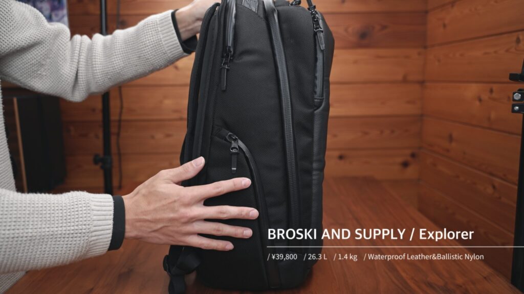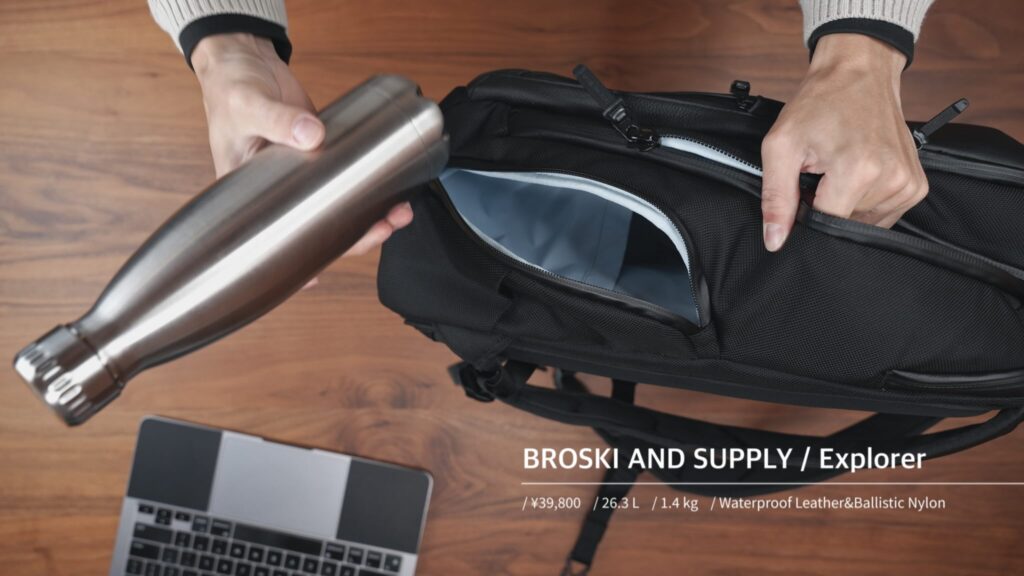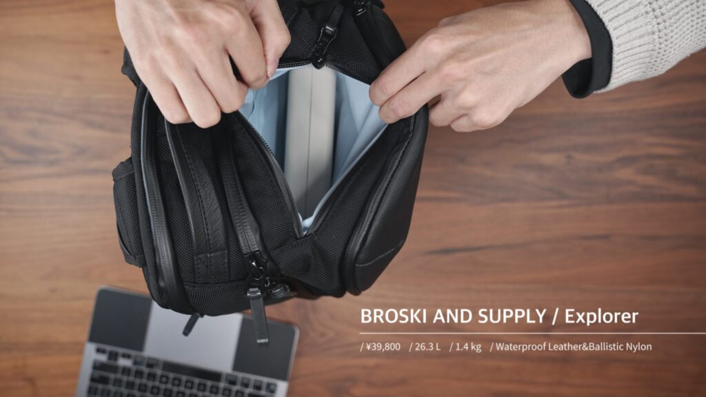 日本発のバッグブランドBROSKI AND SUPPLYによるビジネストラベル向けフラッグシップモデル。容量26.3Lで通勤から1~2泊の旅行まで汎用的に使える絶妙サイズに設計されています。特徴は前面に採用した特殊な防水本革で、上品なレザーの風合いを保ちつつ雨やシミに強い加工を実現。